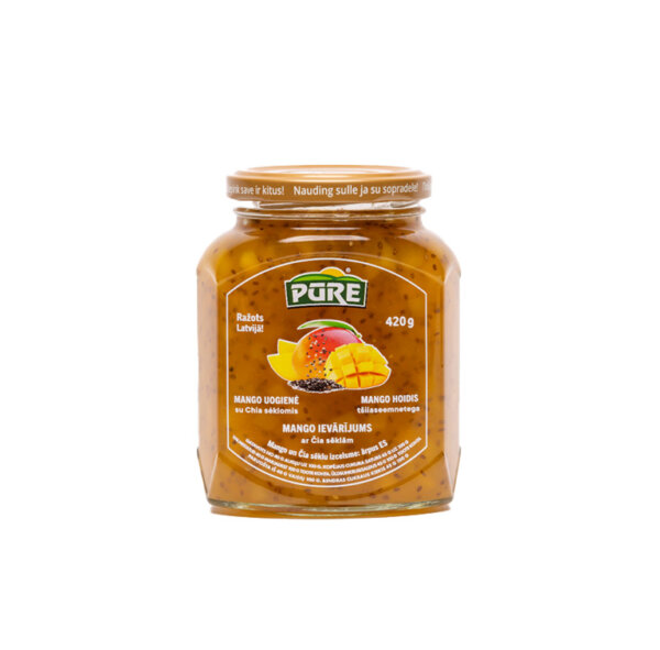 mango 40% (Päritolu: mitte-EL), glükoosi-fruktoosisiirup, suhkur, vesi, tšiiaseemned (Salvia hispanica) (1%) (päritolu: mitte-EL), paksendaja (pektiin), sidrunimahla kontsentraat,hape (sidrunhape), säilitusaine (kaaliumsorbaat).