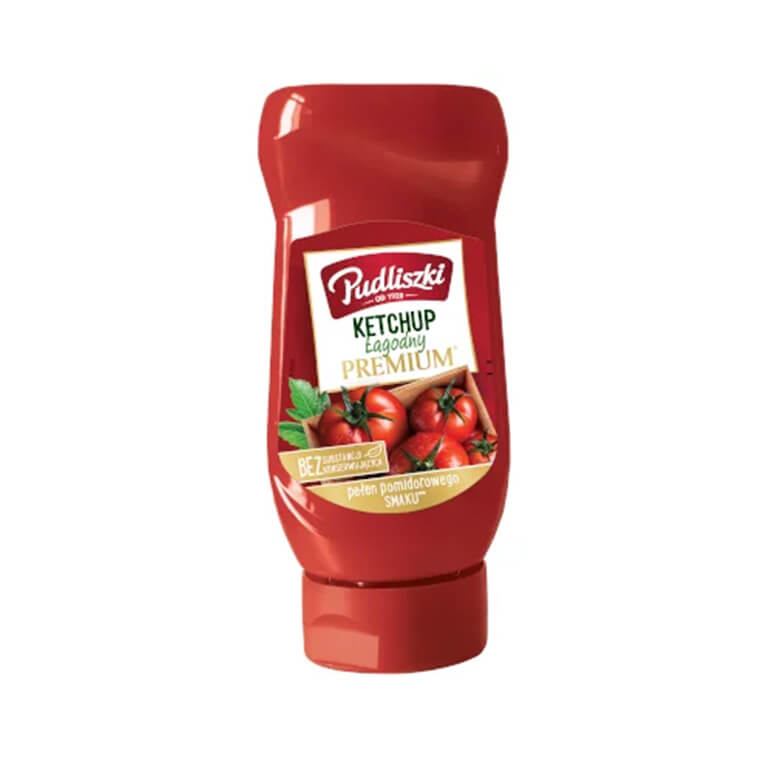 Tomatipüree 70%, suhkur, piiritusäädikas, sool, modifitseeritud maisitärklis, Cayenne’i pipar 0,01%, vürtsid, ürdid.