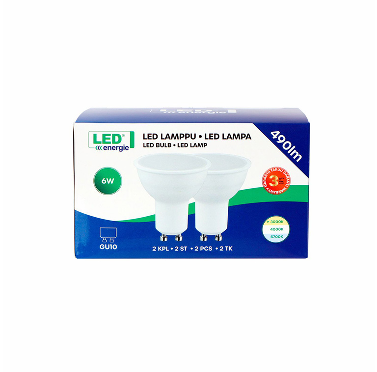 AC 230 V / 50 Hz, 6 W, 490 lm, 3000 K.