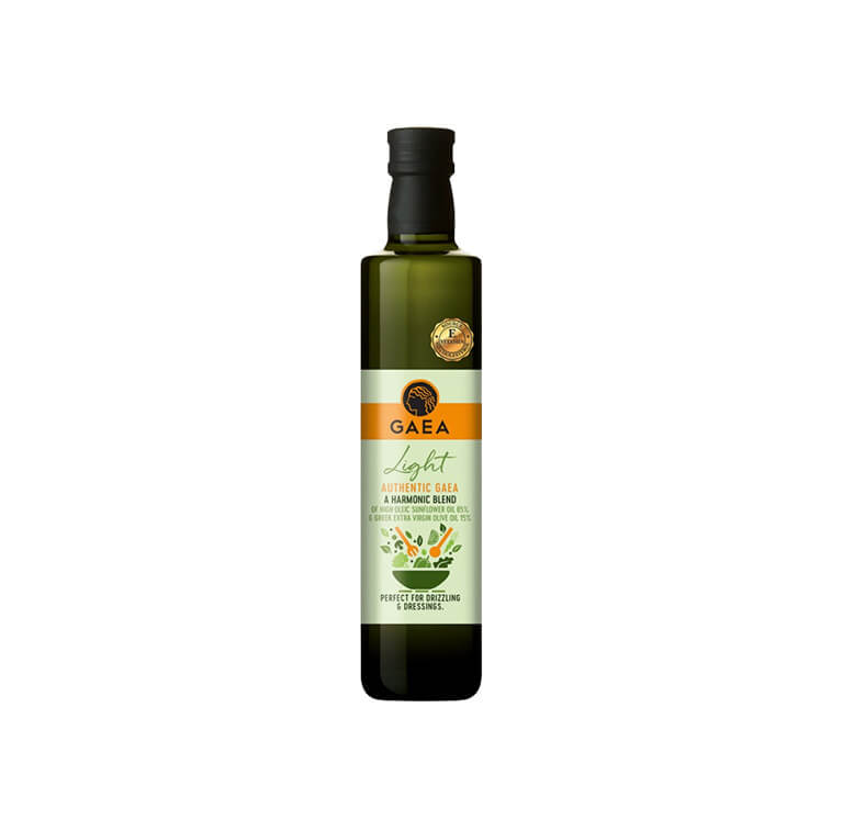 GAEA FINE, auhinnatud ekstra väärisoliiviõli ja kõrge oleiinisisaldusega päevalilleõli segu, on oma rikkaliku maitseprofiili poolest suurepärane erinevate külmade roogade ja salatite jaoks.