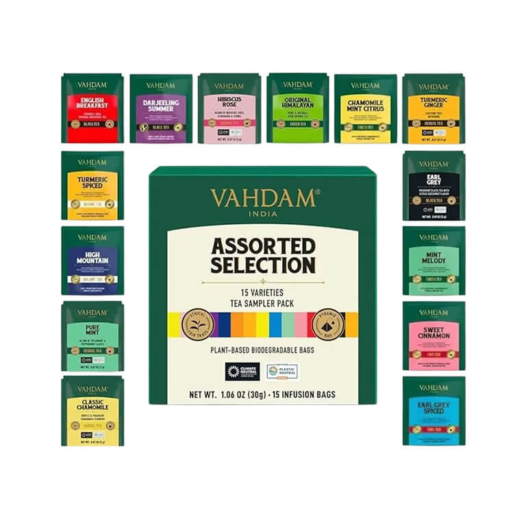 Esmaklassiline teede assortii, mis sisaldab 15 erinevat maitset parimatest mustadest teedest, rohelistest teedest, taimeteedest ja o olong teest.