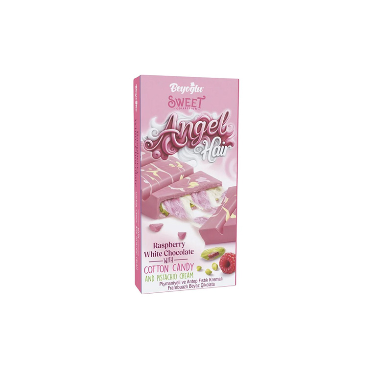 Valge Šokolaad Angel Hair vaarikate, Türgi suhkruvati ja pistaatsiakreemiga, 80 g